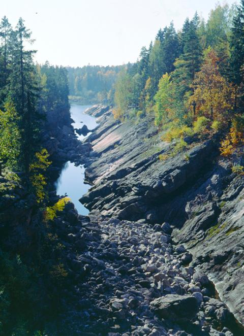 Imatrankosken u... puulajit, kivi, koski, kalliot, uomat |