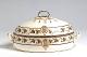 Kannellinen soikea liemikulho kellertävää Wedgewood-fajanssia. Jalkarenkaaton, keskeltä levenevä kulho, jossa kulmikkaat, pyöristetyt lenkkimäiset korvat. Kannessa renkaan muotoinen kahva. Ruskea maalauskoristelu lasitteen päällä: kannessa ja kulhon yläosassa kapeiden raitojen välissä viininlehtiköynnös, jonka katkaisee vapaaherrallisen Armfelt-suvun vaakuna Elefanttiritarikunnan ketjujen sisällä. Kahvassa viininlehtiköynnöstä, kahvan ympärillä lehti- ja tupsukuvio.