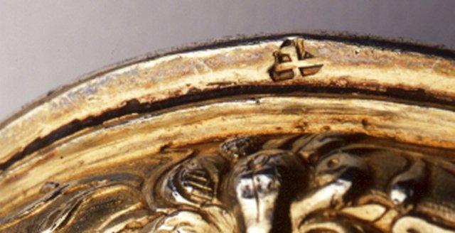Leima: risti; Tyyli: renessanssi; Kontekstiaika: 1891; 1713 - 1721; Kirjallisuus: Finskt Museum 1896, s. 38-40.; Raimo Fagerström, Hopeaa Suomen kansallismuseon kokoelmissa. Museovirasto. Sulkava 2000, s. 12-13; Merkintätekniikka: lyöminen; Tapahtuma: Lienee kätketty maahan isonvihan aikana.