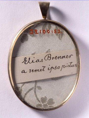 | huomiot | Osan materiaali: metalli; kangas; Kuvatyyppi: kopio omakuvasta; Osan Pintamateriaali / käsittely: kultaus; Kirjallisuus: Elias Brennerin originaalimaalausta koskien: Eliel Aspelin: Elias Brenner s. 52, kuvaselostus numero 7. Helsingfors 1896.; Elias Brennerin originaalimaalausta koskien: Görel Cavalli-Björkman, Svenskt miniatyrmåleri. Stockholm 1981. s. 53-54.; Merkintätekniikka: kirjoitus; Kirjoitus: Elias Brenner a semet ipso pictus; Signeeraus: Fanny Hjelm 1895 copia; Osa: kehys; kääntöpuoli; Aineistotyyppi: esine |