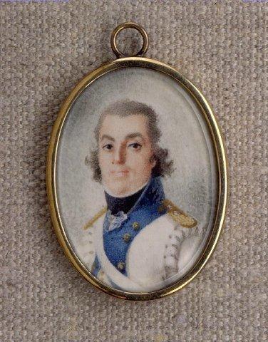 Soikea miniatyyri, miehen rintakuva vasemmalle, kasvot katsojaa kohden. Harmaanruskeat puolipitkät hiukset. Valkoinen univormu jossa sininen kaulus ja kauluskäänne. Musta huivi kaulassa, kullanväriset epoletit, valkoinen olkahihna. Harmaanvalkea tausta. Kullattu kehys jossa ripustuslenkki. Hopealeimat. Vanhan luettelotekstin mukaan takana kullatulla pohjalla musta A-kirjain (ks. yhteydet).
