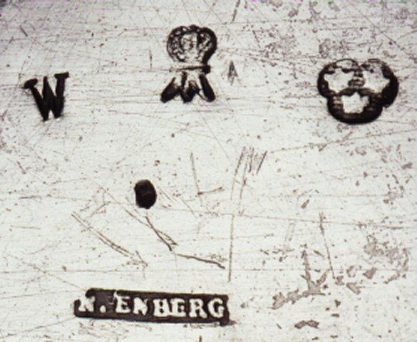 | huomiot | Osan tekniikka: puutyö; Osan materiaali: puu; Osan Pintamateriaali / käsittely: maali; Tyyli: rokokoo; Kirjallisuus: Raimo Fagerström, Hopeaa Suomen kansallismuseon kokoelmissa. Museovirasto. Helsinki 2000.; Merkintätekniikka: kaiverrus; Osa: sangan keskiosa; Leima: Nils Enberg, Turku, 1779 |