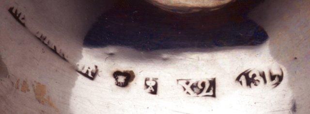 | huomiot | Osan mitat: halkaisija 12.00 cm; Leima: kruunu; X2; 13L; Tyyli: uusrokokoo; Koristelu: kiemurakoristeisia stanssattuja nauhoja; Osa: jalka |