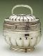 Matala, leveän soikea. Kannen päällystää ja rasian alaosaa ympäröi rivi soikeita pakotettuja kupuroita. Kannen päällä sanka. Rasian yläreunassa leveä painettu ruusunauha. Jalkarengas kapea, profiloitu.