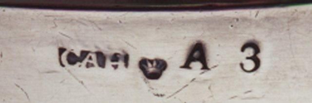 | huomiot | Osan mitat: halkaisija 9.00 cm; Nimi: Nanny; Leima: CAH; kruunu; A3; Tyyli: uusrokokoo; Koristelu: lehtiraita, kaiverrettua vinoneliökoristelua; Merkinnän kuvaus: kaunokirjoituskirjaimin; suorakaiteessa; Merkintätekniikka: kaiverrus; Osa: jalkalevy |