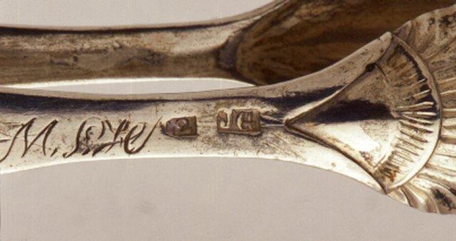 | huomiot | Nimikirjaimet: M.L.H; Leima: kruunu; L2; JG; Tyyli: uusrokokoo; Koristelu: palmetti, viiniköynnöksen lehtiä, rypäleterttuja; Merkinnän kuvaus: kaunokirjoituskirjaimin; suorakaiteessa; Merkintätekniikka: kaiverrus |