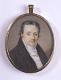 Keski-ikäisen miehen rintakuva oikealle, katse eteenpäin. Harmaanruskeat hiukset, ruskeat silmät. Tumman ruskeanharmaa takki, valkoinen liivi, pystykauluksinen valkoinen paita ja kaulaliina. Vaaleanruskea tausta. Kuvan päällä lasi. Kapea kultainen kehys jossa ripustuslenkki. Kääntöpuolella lasian alla valkoisella silkillä tummanruskea hiuskiehkura.