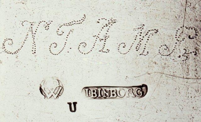 | huomiot | Hankinnan alkupvm: 24.10.1997; Tyyli: rokokoo; Kirjallisuus: Raimo Fagerström, Hopeaa Suomen kansallismuseon kokoelmissa. Museovirasto. Helsinki 2000.; Tyra Borg, Guld- och silversmeder i Finland, Helsingfors 1935, leima 2431.; Merkintätekniikka: kaiverrus; Leima: W; IBINBORG; U; Hankinnan loppupvm: 24.10.1997; Merkinnän kuvaus: pistekaiverruksin |