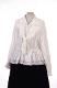 Kangas on valkoista keinokuitua. Valkoinen nylonpitsireunus jatkuu kauluksesta etuhalkion oikealla puolella helmaan asti. Olkapäiltä rinnalle lähtevät kapealla pitsillä reunustetut alaspäin kapenevat kaitaleet. Pitsiä on myös selkäpuolella olevan V-muotoisen röyhelön reunassa. Pitseissä hopealankakirjailuja. V- muotoinen kahdesta kappaleesta ommeltu helma on yläreunasta päärmätty ja poimutettu. Päärmeeseen on molempiin päihin pujotettu kuminauhan pätkä. Helman alareunassa on valkoinen nylonpitsi. Hihat ovat pitkät, väljät ja olalta poimutetut. Suun päärmeeseen on pujotettu leveä kuminauha ja siitä ylöspäin joustava ranneke, joka on tehty neljällä kumilangalla tehdyn ompeleen avulla. Etuhalkio on kiinnitetty viidellä teräsnepparilla (painonapilla).