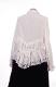 | huomiot | Osan tekniikka: käsityö/tekstiili; Osan materiaali: lanka; Osan mitat: pituus 45.00 cm; pituus 60.00 cm; leveys 4.50 cm; pituus 38.00 cm; Osa: etukappale; hiha; pitsi; takakappale; takaröyhelö |
