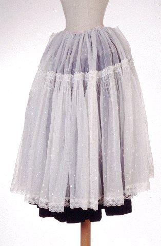 | huomiot | Osan tekniikka: käsityö/tekstiili; Osan materiaali: lanka; kangas; Osan mitat: leveys 600.00 cm; leveys 3.50 cm; leveys 30.00 cm; korkeus 20.00 cm; leveys 55.00 cm; Osa: helma; pitsi; tasku; vyötärö |