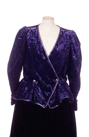 Sinistä kuvioitua samettia oleva lyhyt röijy. Vuori on mustaa nylonia. Etuhalkion ja helman reunaan on ommeltu kapea tummansinistä silkkiä oleva kaitale joka on käännetty myös nurjalle puolelle. Ei erillistä kaulusta. Etuhalkio on kiinnitetty ainoastaan vyötärön kohdalta yhdellä nepparilla. Helma ommeltu neljästä kappaleesta ja rypytetty laskoksille. Hihansuissa on molemmissa kaksi koristenappia. Samanlainen nappi on myös vyötäröllä etuhalkion vasemman nepparin kohdalla. Hihat olkapäiltä rypytetyt.