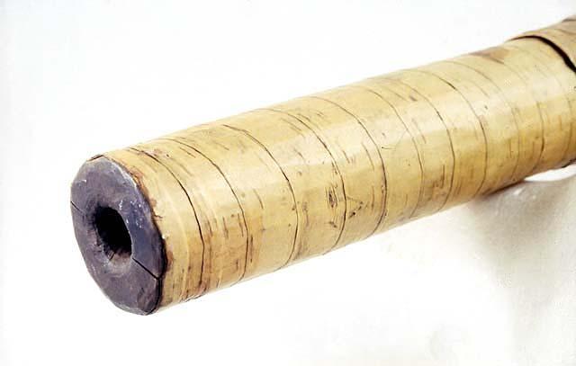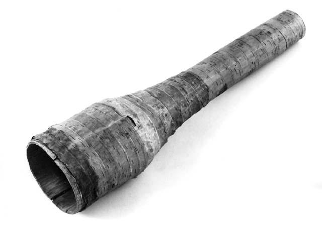 Puutrumpetti, turu. Halkioputkisen, tuohinauhalla päällystetyn soittimen kapea putki levenee jyrkästi kaikusuppiloksi.