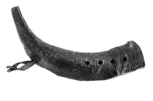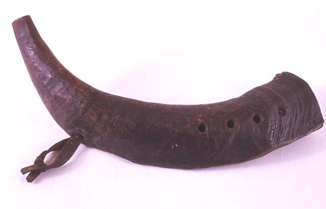 Pukin sarvesta tehty soitin, jossa neljä sormiaukkoa. Sivussa ripustusreikä, jossa lyhyt nahkainen nauha. Sarven suu on aikoinaan haljennut, jolloin on porattu kaksi pientä reikää halkeaman molemmin puolin ja kiristetty ne yhteen langalla.