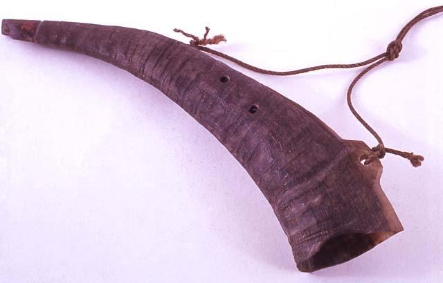 Pukin sarvesta tehty soitin, jossa kaksi sormiaukkoa ja sivussa kaksi ripustusreikää. Lehdykkä on kadonnut, mutta se on ollut kiinnitettynä puhalluspään vuollussa uurroksessa olleella narulla. Soitinta on soitettu poikkihuilun tapaan.