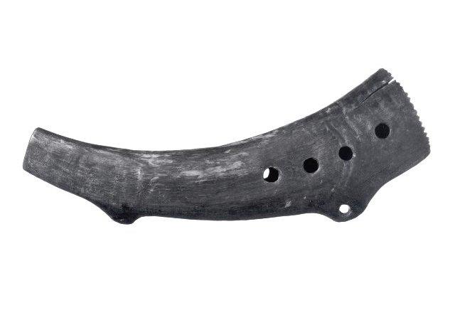 Pukin sarvesta tehty soitin, jossa neljä sormiaukkoa ja peukaloaukko. Lisäksi sivussa kaksi reikää ripustamista varten. Sarven suu on koristeltu sahalaitaiseksi.