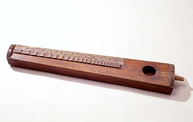 | huomiot | Osan mitat: paksuus 3.20 mm; paksuus 4.50 mm; pituus 57.00 cm; leveys 0.25 cm; korkeus 1.00 cm; paksuus 20.00 mm; paksuus 5.50 mm; Merkintätekniikka: kirjoitus; Osa: kansi; pohja; pykälälauta; päätylaudat; sivu; Kirjoitus: Inköpt i augusti 1907 af G. W. Boijer i Nikkarila boställe i Pieksämäki socken.; Merkinnän kuvaus: musteella kirjoitettu teksti; numeronuottikirjasta soittamista varten tehdyt numeromerkinnät |