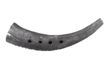 Pukin sarvesta tehty soitin, jossa neljä sormiaukkoa. Ulkoreuna pykälöity, minkä lisäksi ulkoreunassa kaiverrettuja merkintöjä.