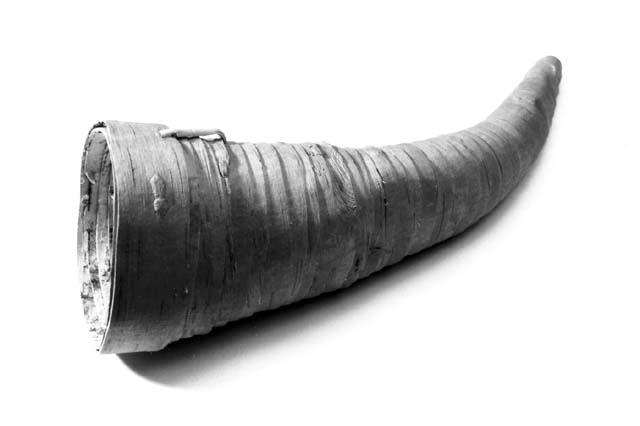 Tuohitrumpetti, joka on tehty n. 3 cm levyisestä tuohinauhasta spiraalimaisesti kiertäen. Valmis torvi on käännetty kaarevaksi. Tuohinauhassa sisäpinta päälläpäin, nauhan pää on kiinnitetty varvulla.