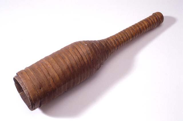 Puinen, halkioputkinen, tuohella päällystetty trumpettisoitin, turu. Soittimen putki levenee jyrkästi kaikusuppiloksi, mikä saa aikaan pulloa muistuttavan muodon. Puhallusaukko pyöreä. Tuohinauhan päät kiinnitetty naulaamalla.