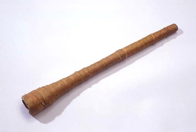Puurunkoinen, halkioputkinen ja tuohella päällystetty torvi, jossa kapea ja kartiomainen putki. Putken ympärille, tuohen alle on sidottu vitsaksesta tehtyjä kiristysvanteita. Sormiaukoton.