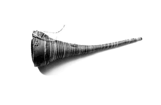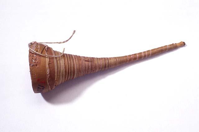 Sormiaukoton, tuohinauhasta kierretty torvi, jonka päässä oljesta tehty lehdykkäputki ja siihen leikattu kieli.
