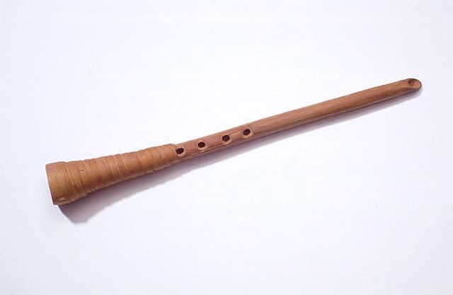 Sormiaukollinen klarinetti, jonka ehytputkisen lehdykkäkappaleen päässä on tuohesta kierretty pienikokoinen kaikusuppilo. Sormiaukkoja on neljä. Alkuperäinen, katajainen kieli puuttuu. Museoon tullessa soittimen on sanottu olleen uuden, mutta hyvin vanhaa mallia.