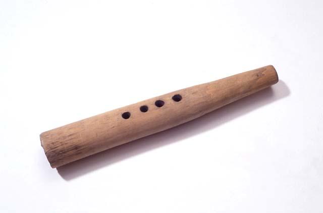 Lähes suora, ehytputkinen puutrumpetti, jossa on neljä sormiaukkoa. Sormiaukot on poltettu ja puukolla kaivertaen suurennettu. Kolmannen sormiaukon alapuolella on erittäin pieni peukaloaukko, joka on lisätty jälkikäteen. Peukaloaukkoa tehtäessä puuputki on haljennut.