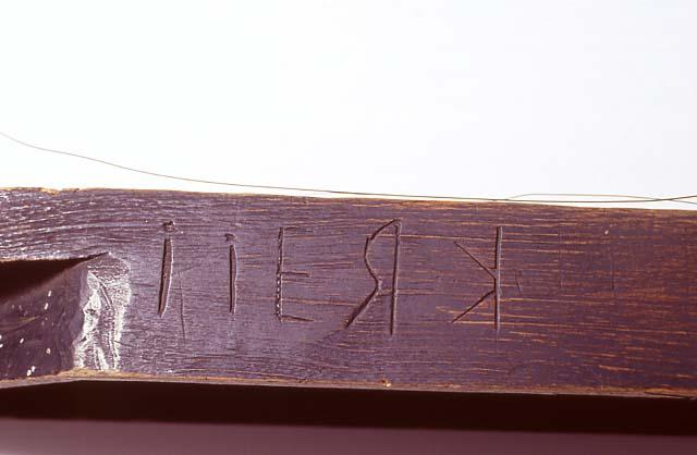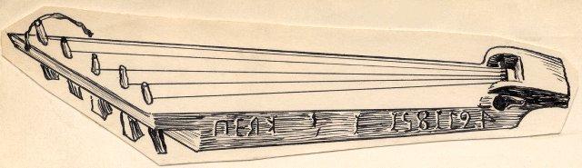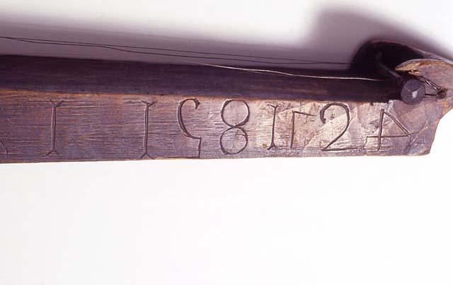 | huomiot | Osan mitat: halkaisija 0.30 mm; korkeus 5.00 cm; pituus 60.00 mm; Osan materiaali: metalli; Merkinnän kuvaus: kaiverrettuja merkintöjä, R- ja K-kirjaimet peilikuvina, samoin numerot 7 ja 4, lisäksi numero 5 ylösalaisin (merkintä sisältää mahdollisesti päiväyksen 24.7.1851?) toisella sivulla lisäksi vaikeasti tunnistettava, kaiverrettu kaunokirjoitusteksti, mahdollisesti nimi: Joh.; Merkintätekniikka: kaiverrus; Osa: kielet; koppa; viritystapit |