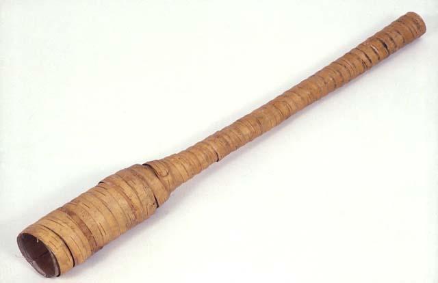 Puinen, halkioputkinen, tuohella päällystetty torvi eli turu. Soittimen putki levenee jyrkästi kaikusuppiloksi.