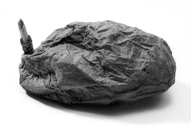 Säkkipilli, jossa lampaan tai vasikan mahasta tehty ohutseinämäinen ilmapussi ja luinen, murtunut puhalluspilli. Ilmapussissa on kaksi reikää. Toiseen näistä on sidottu lujasti luinen puhalluspilli. Nykyisin kadonnut melodiapilli on ollut kiinnitettynä toiseen reikään. Vatsalaukusta lähtevän suolen aukko on tukittu tulpalla. Pussin sisältä on löytynyt kaksi tukevasta ruokoputkesta tehtyä soropilliä, joita on käytetty melodiapillin päässä.