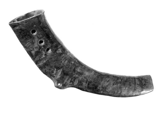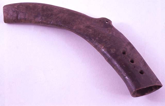 Pukin sarvesta tehty soitin, jossa on kolme sormiaukkoa. Sivussa ripustusreikä.
