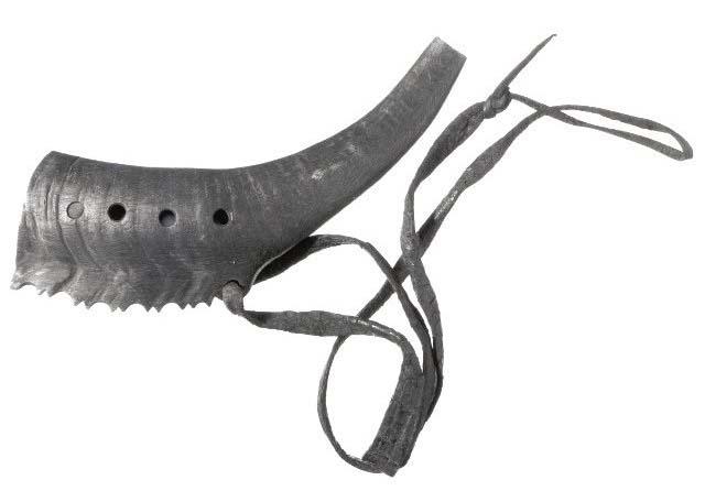 Pukinsarvesta tehty paimentorvi. Sormiaukkoja neljä, sivussa yksi ripustusreikä, jossa nahkainen kanninnauha. Ulkosyrjä koristeltu sahalaitaiseksi.