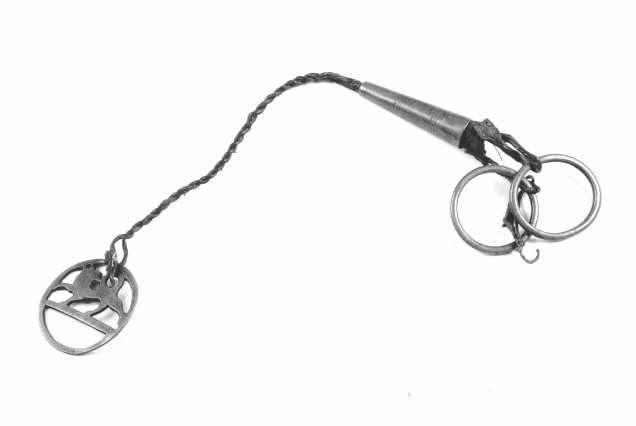 Vyölliset, joihin kuuluu neulakotelo, kaksi rengasta ja vyöllispyörä. Messinkisen tupen sisällä on nahkainen sisäosa neuloja varten. Messingistä valetussa vyöllispyörässä on keskelle kuvattu omaa häntäänsä pureva leijona.