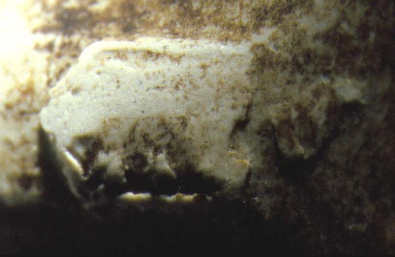 | huomiot | Osan mitat: korkeus, suurin 0.50 cm; halkaisija, suurin 2.10 cm; korkeus, suurin 5.00 cm; pituus, suurin 36.70 cm; halkaisija, suurin 0.70 cm; Kirjallisuus: Useita hollantilaisia liitupiippuja käsitteleviä kirjoja. D.R. Atkinson, A Brief Guide for the Identification of Dutch Clay Tobacco Pipes Found in England. Post-Mediaval Archaelogy 6 (1972). W. Krommenhoek - A. Vrij, Kleipijpen, Drie eeuwen Nederlandse kleipijpen in foto´s; Düco, Merken van Goudse pijpenmakers 1660-1940. (1982).; Merkintätekniikka: leimaus; Osa: jalkanipukka; piipun kopan suu; piipun koppa; varsi; Leima: valmistajamerkki / kantaleima; tuotemerkintä kohokuviona; valmistajamerkintä; Koristelu: Kopan suun alapuolta kiertää pistenauha.; Kontekstiaika: 8.10.1771; Aineistotyyppi: esine; Merkinnän kuvaus: kaadettu D, jonka sisällä ristikko. Kuviota ympäröi pistenauha. Kyseessä on lintuhäkki "boogkooi" = boog (kaari, käyrä), kooi (häkki); Vaakunakilpi, jossa erottuu heikosti Goudan kaupunginvaakuna: vaakunakilpi, jonka sisällä kaksi (3) selvästi erottuvaa tähteä pystypalkin oikealla puolella pystyssä. Palkin vasen puoli kulunut sileäksi. Vaakunan yläpuolella S-kirjain.; Vartta kiertää 4 sahanteräkuvioista nauhaa, jonka yläpuolella (kopan pää) on kirjaimet E N SOUFREU (S ja viimeinen U heikkoina). IN GOUDA |