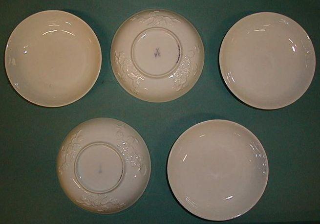 Meissenin posliinia oleva valkoinen, lasitettu tee- tai kahvikupin aluslautanen. Lautasen sisäpuoli on tasainen, reuna nousee jyrkästi ylöspäin ja kulma on pyöreä. Ulkopuolella on kolme reliefikenttää, joissa itämaisvaikutteinen kirsikankukka-aihe. Jalkarengas, jonka sisäpuolella on lasitteen alla leima. Lautanen on jalkarenkaan alapintaa lukuun ottamatta lasitettu. Lautanen on ns. Böttger-posliinia.