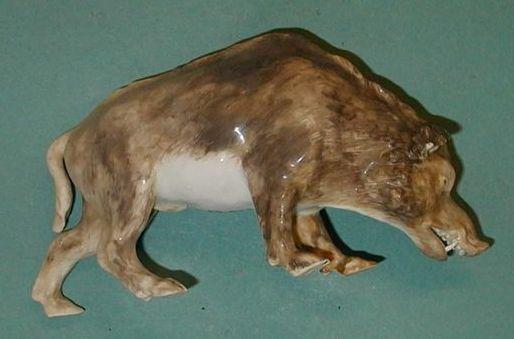 Meissenin posliinia oleva lasitettu pienoispatsas, villisikauros. Patsas on jalustaton. Villisika seisoo neljällä jalalla pää alastaivutettuna siten, että sian alaleuka ulottuu maahan. Suu on raollaan ja hampaat paljastettuina. Ylä- ja alakulmahampaat kaartuvat ulospäin. Korvat ovat sivuasentoiset. Otsapenkereestä hännäntyveen ulottuu harjas. Selkälinja on säkää kohti nouseva ja patsaan korkein kohta sijaitsee sään kohdalla. Häntä laskeutuu kinnerniveleen asti. Posliinimassaan tehty karvapeitettä imitoivia uurteita. Vatsaosaa lukuunottamatat patsas on maalattu lasitteen päälle harmahtavan ruskeaksi. Myös alaleuan alaosa, leukaperät, raajat sekä sukuelimet on maalattu. Maalauskoristelu puuttuu osittain tai kulunut harjaksen päältä säästä hännänkaareen asti. Vatsassa on polton yhteydessä tullut halkeama.