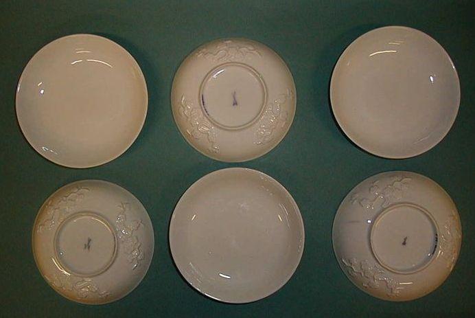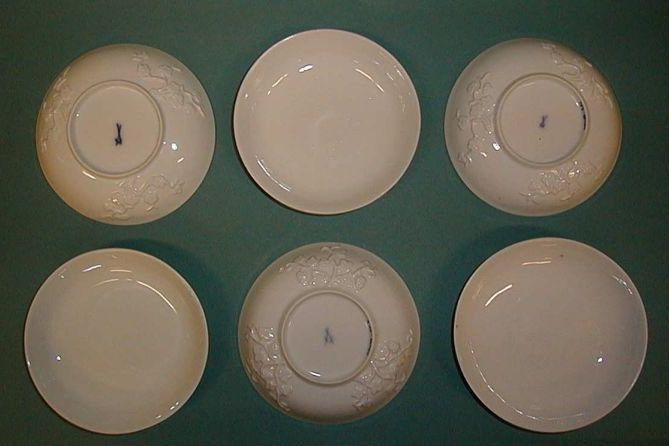 Meissenin posliinia oleva valkoinen, lasitettu tee- tai kahvikupin aluslautanen. Sisäpuoli on tasainen, reuna nousee jyrkästi ylöspäin, kulma pyöreä. Ulkolaidalla on kolme reliefikenttää, joissa itämainen kirsikankukka-koriste. Jalkarengas. Jalkarenkaan alapintaa lukuun ottamatta lasitettu. Lautanen on ns. Böttger-posliinia.