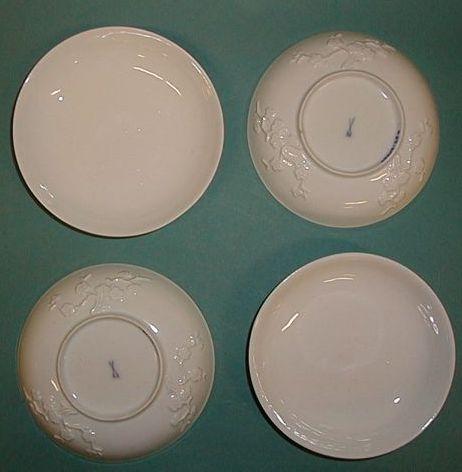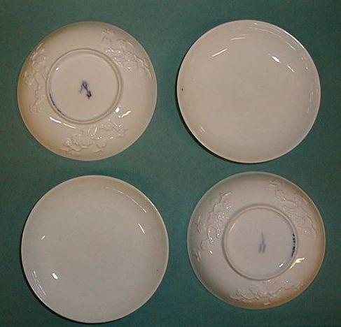 Meissenin posliinia oleva valkoinen, lasitettu tee- tai kahvikupin aluslautanen. Sisäpuoli on tasainen, reuna nousee jyrkästi ylöspäin, kulma pyöreä. Ulkolaidalla on kolme reliefikenttää, joissa itämainen kirsikankukka-koriste. Jalkarengas. Jalkarenkaan alapintaa lukuun ottamatta lasitettu. Lautanen on ns. Böttger-posliinia.