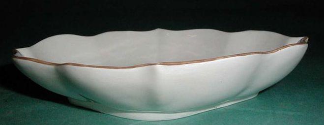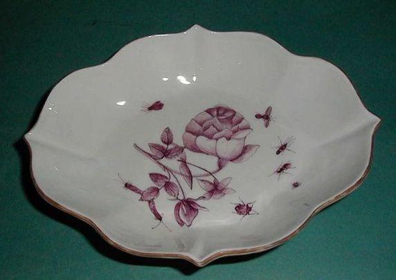 Meissenin posliinia oleva lasitettu lusikkavati. Soikea korkeareunainen vati, jonka reuna on profiloitu. Pohjassa on rombimainen jalkarengas. Vadin kahdeksaan kaareen jaettua laitaa kiertää virheetön kultaus. Vati on pohjarenkaan alapintaa lukuun ottamatta lasitettu, kirkas lasitus. Lasitteen päälle on maalattu kukka- ja hyönteisaiheinen viininpunainen koristemaalaus, Deutsche Blumen. Vadin keskellä on kukka, jonka ympärillä on useita hyönteisiä.