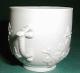 Meissenin posliinia oleva valkoinen tee- tai kahvikuppi. Kuppi on loivasti ulospäin profiloitu. Seinämässä on kolme reliefikenttää, joissa itämaisvaikutteinen kirsikankukka-aihe. Korva voluuttimainen ja simpukka- ja kohoaaltokoristeltu. Kuppi on pohjarenkaan alapintaa lukuun ottamatta lasitettu. Kuppi on ns. Böttger-posliinia.