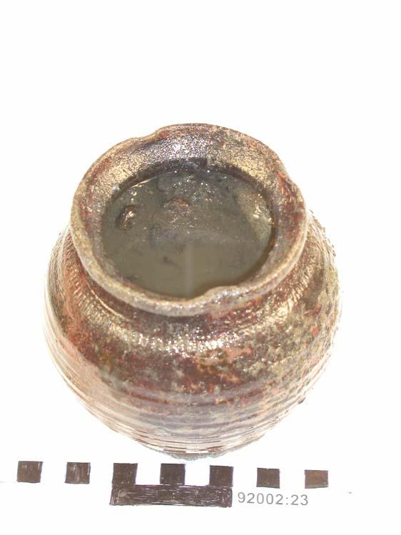 | huomiot | Osan tekniikka: keramiikka; Osan materiaali: keramiikka; Osan mitat: halkaisija, suurin 7.40 cm; halkaisija, suurin 9.10 cm; Kirjallisuus: Claes Wahlöö: Keramik 1000-1600 i svenska fynd, Archaeologica Lundensia, kulturhistoriska museet, Lund, 1976; -D. Gaimster: German Stoneware 1200-1900, archaeology and Cultural History, Cambridge University Press, 1997 -ed. D. Gaimster, M. Redknap: Everyday and exotic pottery from Europe c. 650-1900 : studies in honour of John G. Hurst, Oxford, 1992 -ed. D. Gaimster, M. Redknap, H-H. Wegner: Zur Keramik des Mittelalters und der beginnenden Neuzeit im Rheinland, Oxford, 1988; David Gaimster, Hanseatic Trade and Cultural Exchange in the Baltic cirka 1200-1600. Pottery from Wrecks and Harbours. Teoksessa Schutz des Kulturerbes unter Wasser. Lübstorf 2000.; Osa: pohja; suureuna; Erityispiirteet: Suureuna muotoiltu "neliapilan" -malliseksi.; Koristelu: Ruukun suureuna on muotoiltu "neliapila" -malliseksi, suureunan alapuolella kiertää pykäläviiva leimakoristelu.; Kontekstiaika: 1300-luku, keskiaika; Aineistotyyppi: esine |