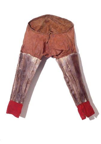 | huomiot | Osan tekniikka: käsityö/tekstiili; Osan mitat: pituus 65.00 cm; Osan materiaali: nahka; Osa: lahkeen sisäpituus |
