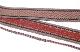 Nauhapirralla kudotut paulat. Villaa, värit: punainen, harmaa, tummanruskea ja sininen. Paulan päät letitetty.