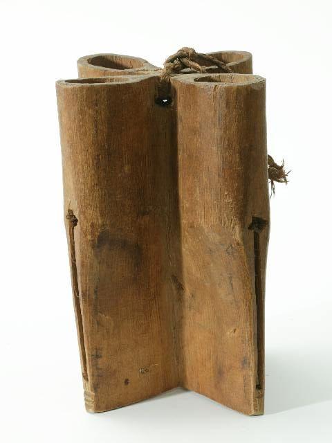 Veitsikotelo on valmistettu yhdestä puusta onteloimalla, ja siinä on tilaa neljälle puukolle. Koteloon on kiinnitetty nahkainen ripustusnauha.