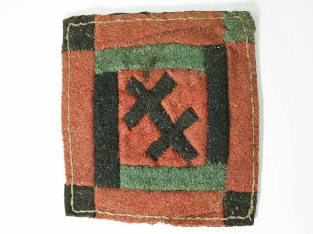 Neulatyyny on valmistettu mosaiikkitekniikalla punaisesta, vihreästä ja mustasta sarkakankaasta. Keskellä on kuvio, joka muistuttaa kaksoisristiä. Neulatyyny on nelikulmainen. Vuori on painokuviollista puuvillaa.