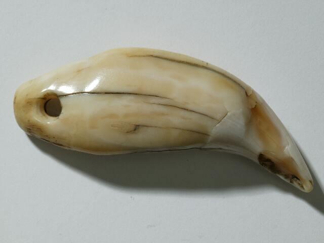 Karhunhammas, jonka toisessa päässä on reikä ripustusnauhaa varten.