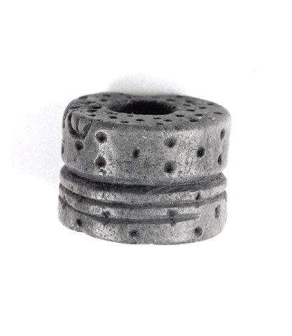 Pieni värttinäpyörä, joka on koristeltu ympyräuurroksin ja pistein.