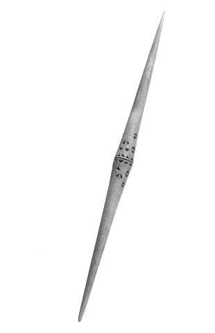 Veitsenkärkileikkauksin koristeltu värttinä.