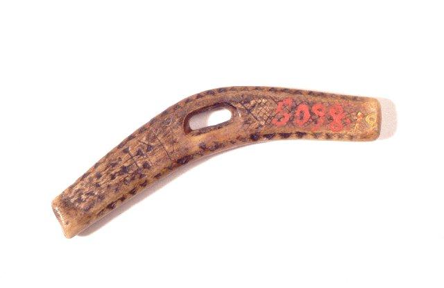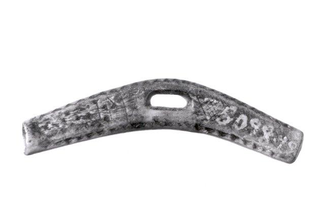 Hihnan polo, sarvinen tai luinen sirotekoinen, kauniisti kolmiosyvennysriveillä jne. koristettu linkku.